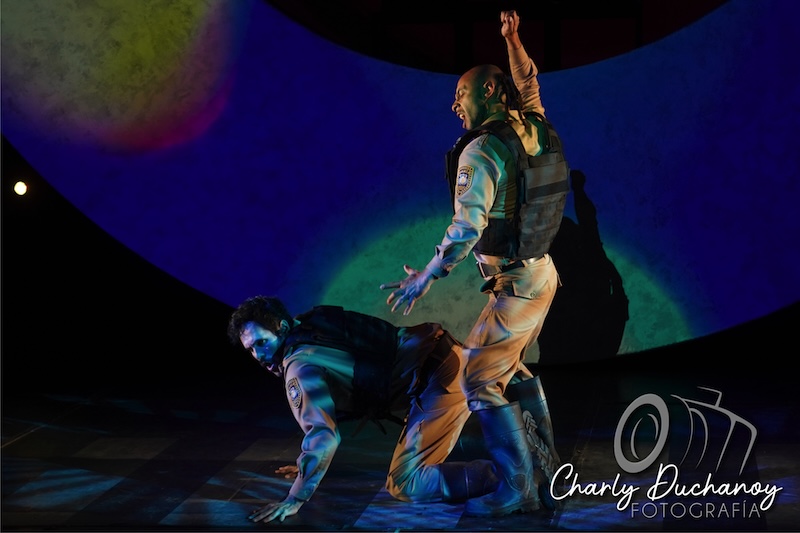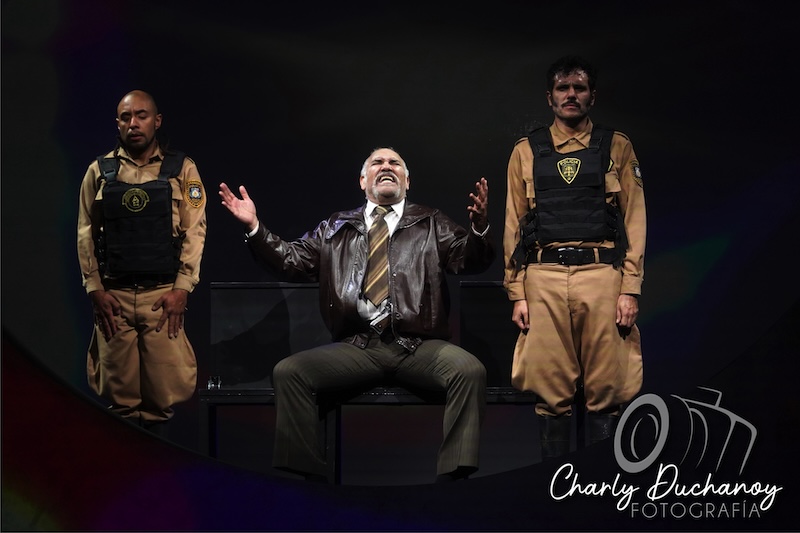 Esta historia es interpretada por un elenco coral conformado por actores miembros de la Compañía Nacional de Teatro encabezado por una Julieta Egurrola (Refugio) que llama la atención verla bailar cumbia y que hace mancuerna con Daniel Gímenez Cacho ( Lic. Hernández) quien alterna con David Hevia, completando el elenco Rodolfo Guerrero (Jefe de policías), Pedro Martínez (Abogado / Tezcatlipoca), Adriana Reséndiz (Servidora pública/ Tonatiuh), Armando Comonfort (Marcelino), Mireya González (Patricia), Ana Karen Peraza (Rosita), Shadé Ríos (Lucía), Fernando Sakanassi (Gustavo), Iván Zambrano (Oficial Ramírez), Salvador Carmona (Pepe), Omar Silva (Oficial Fuentes). Músicos en vivo Sebastián Espinosa, Elvira Marzal y Yurif Nieves.