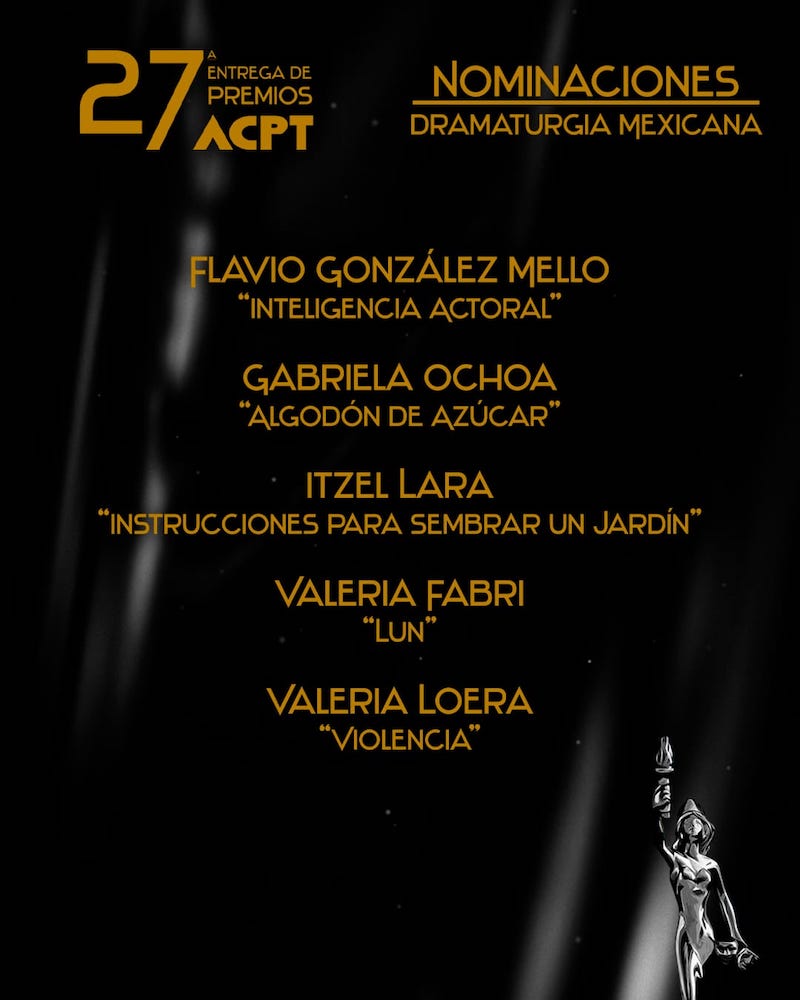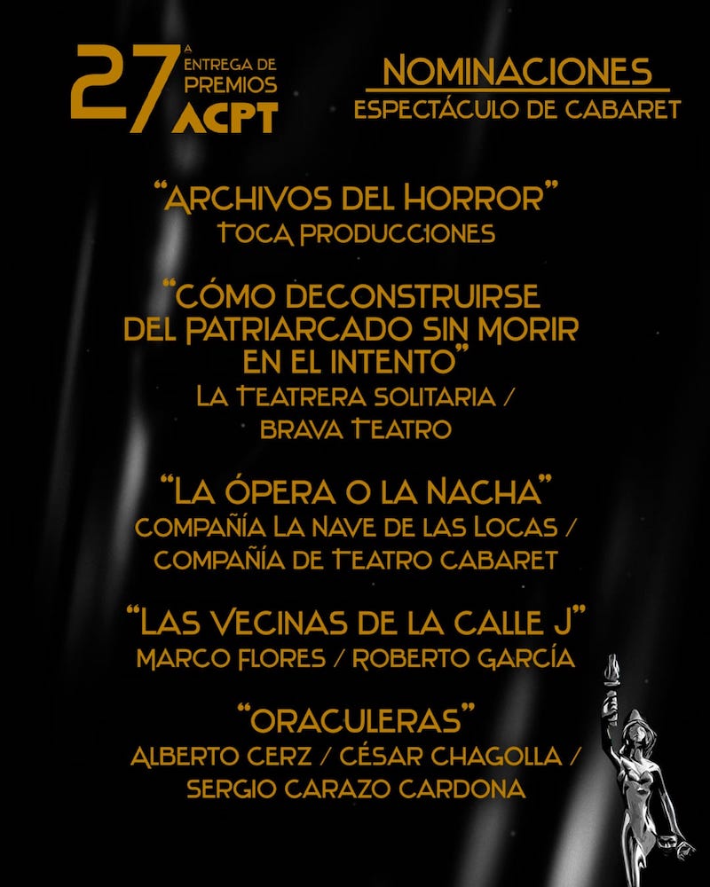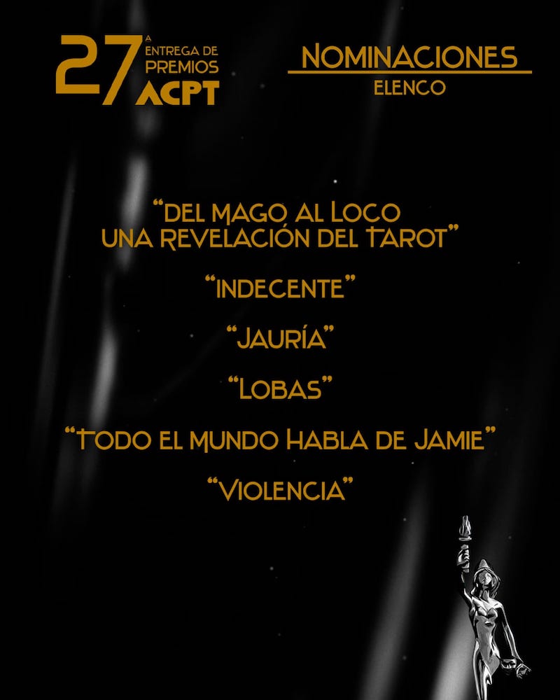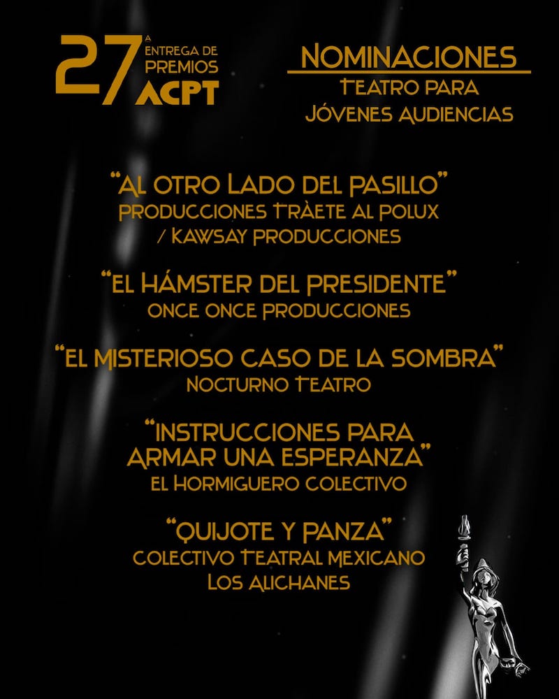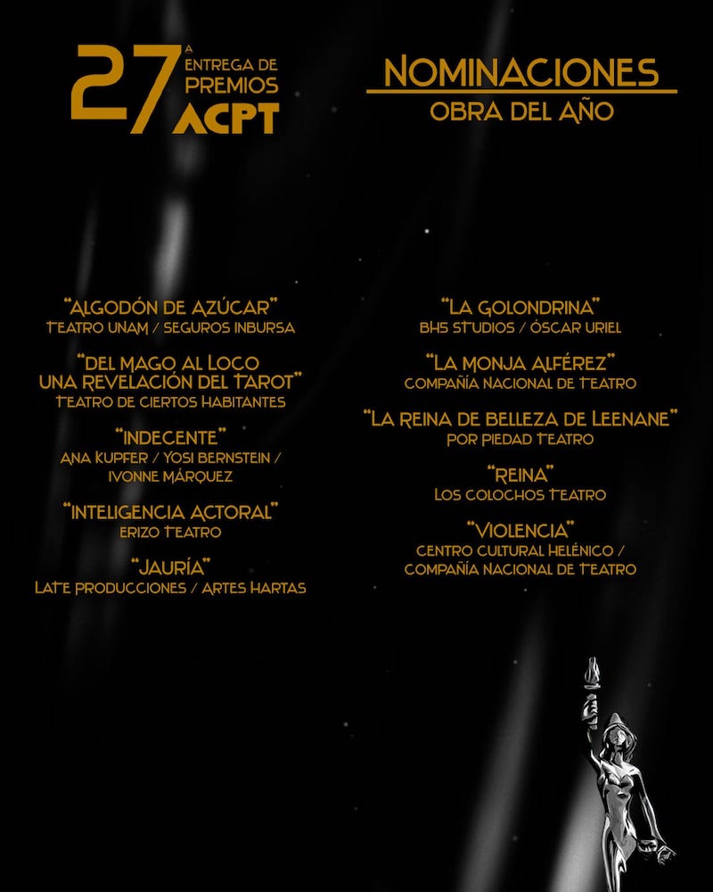 La Agrupación de Críticos y Periodistas de Teatro ACPT, da a conocer sus nominaciones del periodo 2022 / 2023 rumbo a su ceremonia de entrega de premios a celebrarse el 3 de octubre del presente año.