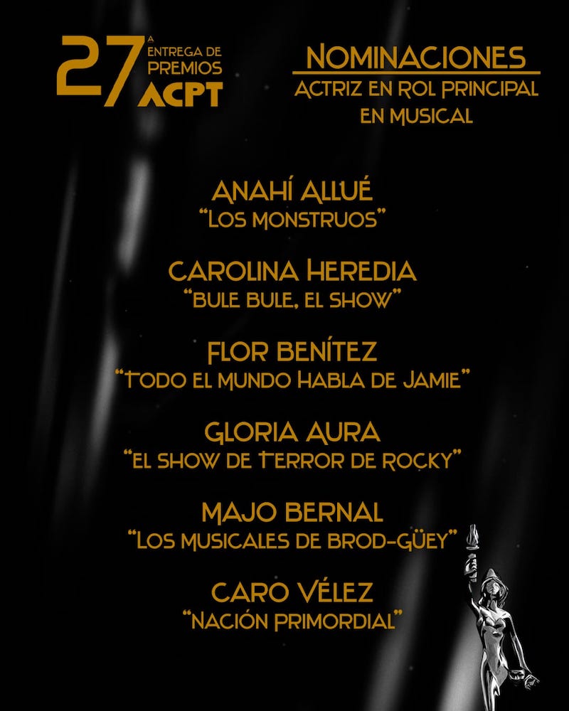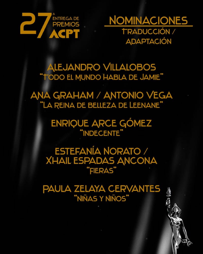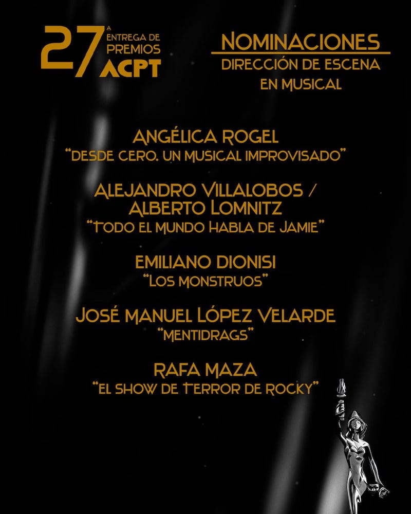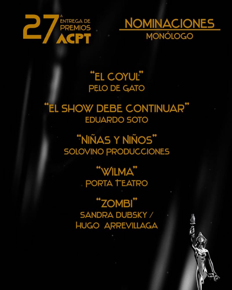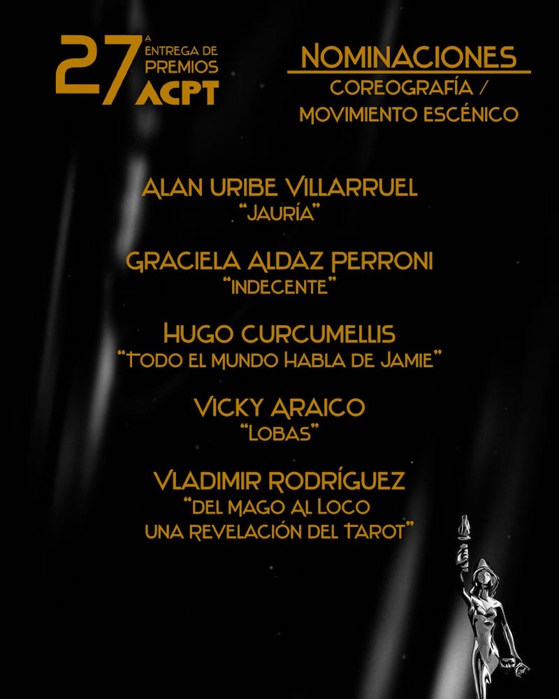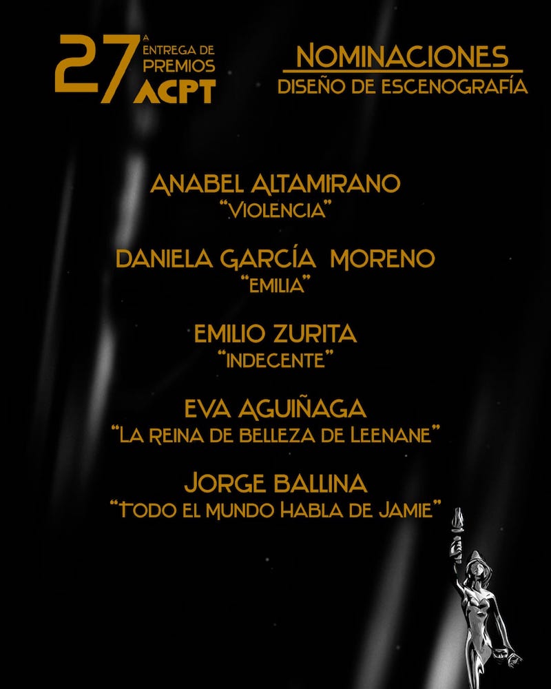 La Agrupación de Críticos y Periodistas de Teatro ACPT, da a conocer sus nominaciones del periodo 2022 / 2023 rumbo a su ceremonia de entrega de premios a celebrarse el 3 de octubre del presente año.